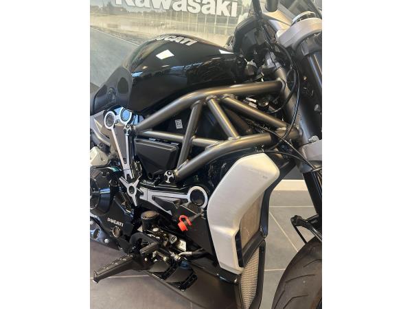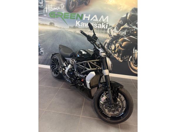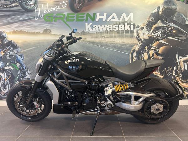 XDiavel S Launched in Milan at the World Ducati Premiere several years ago, the XDiavel S cruiser represents the best of both worlds as it combines Italian style, modern technology, and very high performance. Stunning X Diavel S in Thrilling Black Livery ! These bikes really are a work of art and the sort of bike you can’t stop looking at ! Superb performance and handling and the amazing Ducati V-Twin soundtrack. 2 Owners from new and very low mileage for the year. Full Ducati service history, with 9 service stamps in the book and fitted with a few tasteful Carbon Fibre extras and a flyscreen. Original Ducati pack and keys. As with all Greenham Kawasaki used models, it includes a 12-month guarantee for your peace of mind, with nationwide delivery also an option. Should you have any additional questions about this or any other model here at Greenham Kawasaki, please do reach out to us on 01635 916464 – we look forward to hearing from you. Part exchange very welcome.