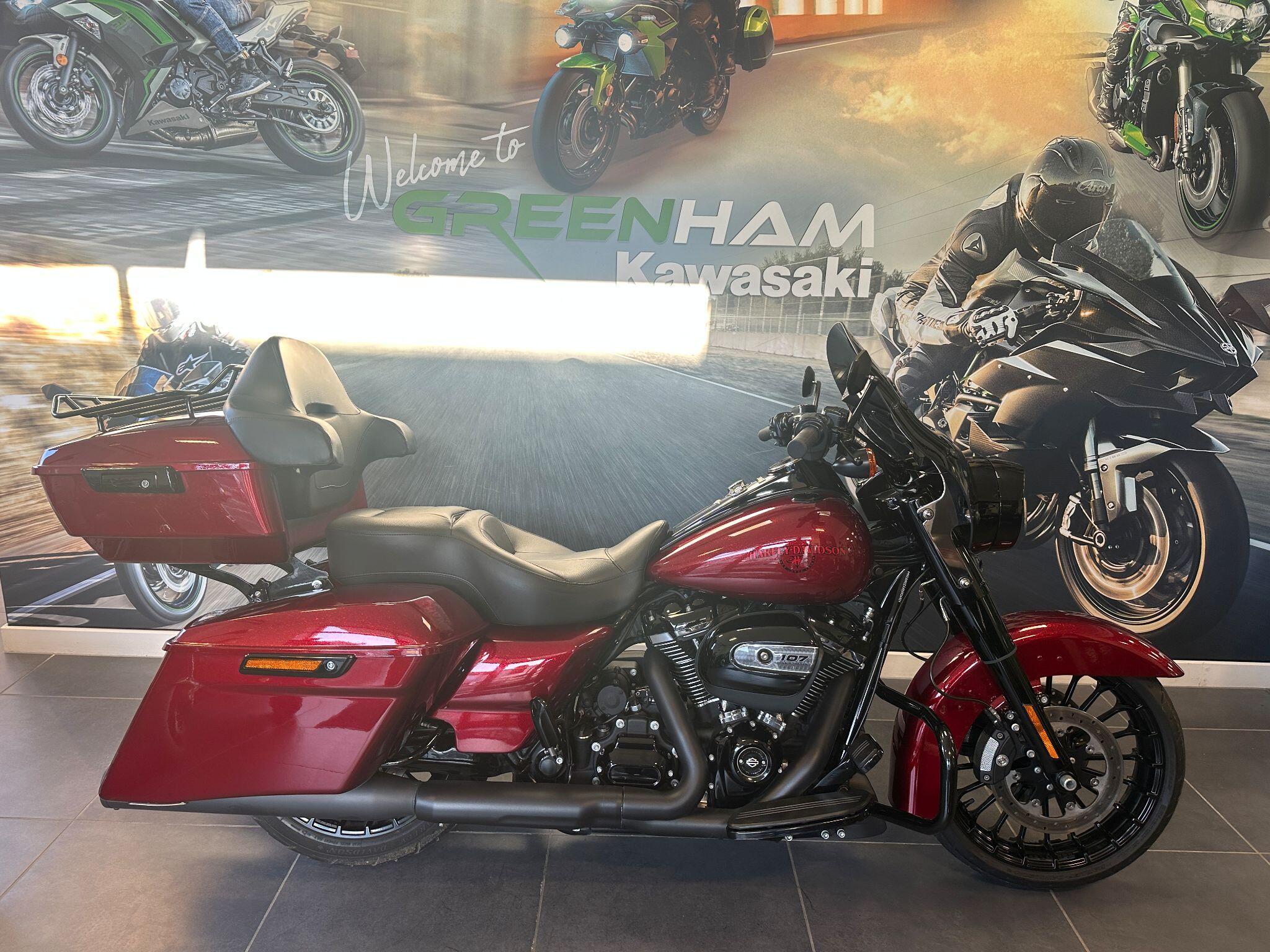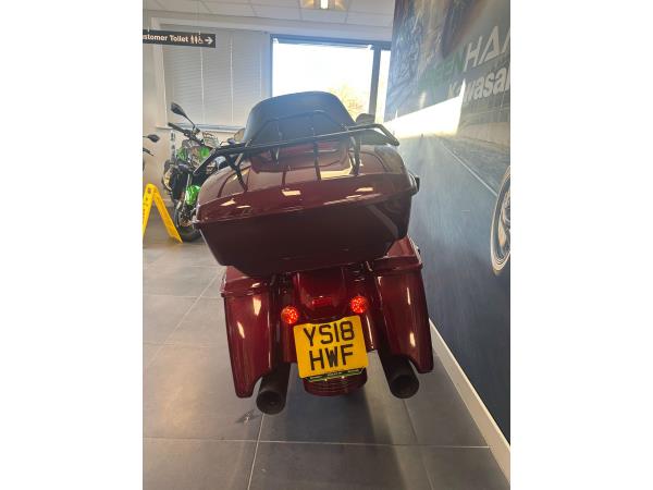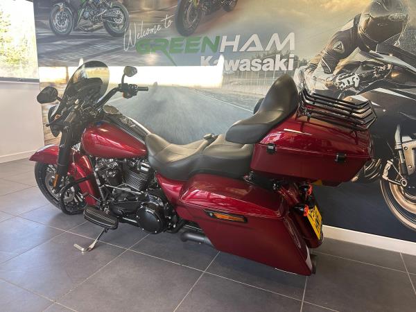 The 2018 Road King Special blends classic touring heritage with a bold, modern custom edge. Stripped-back, blacked-out, and built with authority, this iconic cruiser delivers commanding road presence and effortless long-distance capability. At its heart is the Milwaukee-Eight 107 V-Twin engine, producing strong, responsive torque for smooth cruising and confident overtaking. The low-slung stance, stretched saddlebags, and mini-ape handlebars create a distinctive silhouette that sets the Road King Special apart from the traditional touring crowd. Premium features include a high-output braking system, refined suspension for comfort over distance, cruise control for relaxed highway riding, and a sleek headlight nacelle that completes its unmistakable dark custom look. The hard panniers offer practical storage while maintaining the bike’s aggressive profile. A perfect fusion of American touring comfort and stripped-back custom style, the 2018 Road King Special is built for riders who want presence, performance, and pedigree in equal measure. This particular beautiful example is finished in the Candy Hard custom red, with Touring screen, comfort seats and top box. It will come with 12 months MOT and currently has 3 service stamps in the book, and will leave with a service form us to bring it all up to date. As with all Greenham Kawasaki used models, it includes a 12-month guarantee for your peace of mind, with nationwide delivery also an option. Should you have any additional questions about this or any other model here at Greenham Kawasaki, please do reach out to us on 01635 916464 – we look forward to hearing from you. Part exchange very welcome