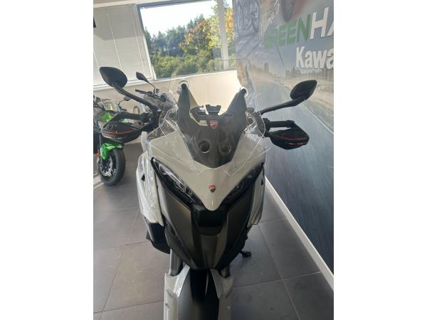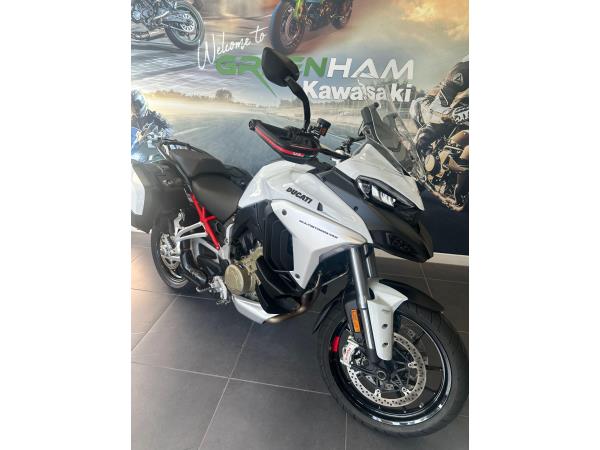 Multistrada V4 s is for those who want to comfortably explore all paths, without compromising on the sports attitude that distinguishes every motorcycle built in Borgo Panigale. More high-performance, efficient and technologically advanced, it amplifies your riding experience, highlighting the pleasure of travel in its every detail. Packed with technology including Cruise control, Quickshifter, Heated Grips, Heated Seats, Traction control. Electronic Suspension and loads more. Superb Multistrada V4 s in great condition throughout and fitted with Ducati panniers. Supplied with the original Ducati pack, 2 keys and fobs, full service history, last serviced at 9139 miles in December 2024 and will have 12 months MOT. Ducati warranty until August 2026 then topped up by us to give a total of 12 months. As with all Greenham Kawasaki used models, it includes a 12-month guarantee for your peace of mind, with nationwide delivery also an option. Should you have any additional questions about this or any other model here at Greenham Kawasaki, please do reach out to us on 01635 916464 – we look forward to hearing from you. Part exchange very welcome.