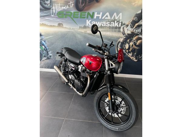 The Speed Twin 900 masterfully blends timeless design with modern engineering, offering a bike that is perfect for both weekend escapes and daily commutes. Its responsive power and dynamic handling deliver a ride that is always exciting, while the signature sound of the Bonneville Twin engine adds to the thrill. Great condition 1 owner Speed Twin throughout in the striking Red metallic ! Standard bike apart from a colourmatched flyscreen. Full service history with 2 service stamps in the book and supplied with the original Triumph pack, 2 keys and handbooks. As with all Greenham Kawasaki used models, it includes a 12-month guarantee for your peace of mind, with nationwide delivery also an option. Should you have any additional questions about this or any other model here at Greenham Kawasaki, please do reach out to us on 01635 916464 – we look forward to hearing from you. Part exchange very welcome.