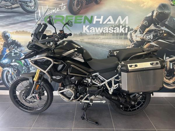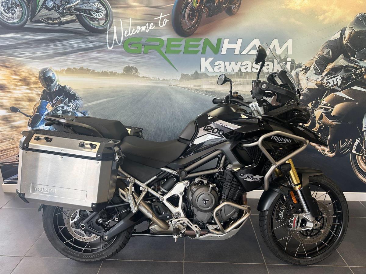 ELEVATE YOUR ADVENTURE Take your adventure to the next level with unmistakable Triumph character and performance, all-road adventure capability, and exceptional comfort. The Tiger 1200 family is now even more advanced and refined than ever. Super condition Tiger 1200 Rally Pro throughout, with very low mileage and fitted with the Triumph Adventure Aluminium Panniers. The Rally Pro comes with some great touring extras as standard including Electronic Suspension, Heated Grips, Heated Seats, Brembo Brake Calipers, LED Indicators and Foglights. Supplied with a full Triumph Service history all carried out by Carl Rosner and the last one at 2564 miles. Will be supplied with 12 months MOT. As with all Greenham Kawasaki used models, it includes a 12-month guarantee for your peace of mind, with nationwide delivery also an option. Should you have any additional questions about this or any other model here at Greenham Kawasaki, please do reach out to us on 01635 916464 – we look forward to hearing from you. Part exchange very welcome.