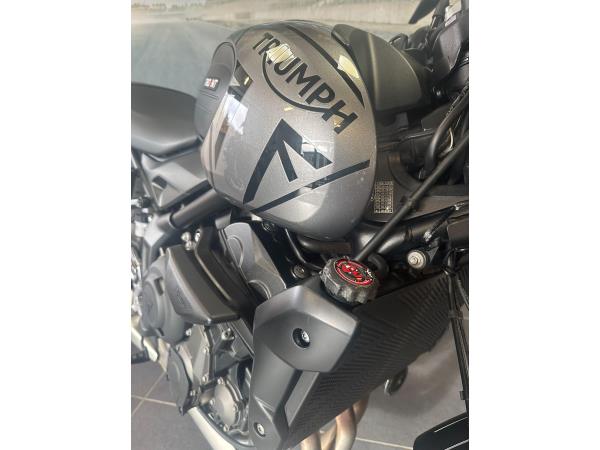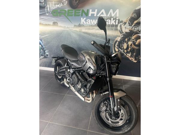 Trident 660 Easy, responsive handling and exciting triple power delivery with contemporary roadster style and useful rider-focused technology, the Trident 660 sets the standard for everyday fun. Stripped-back Roadster style, engaging ergonomics and triple-powered performance, built to rule the street and engineered to make every ride exciting. Great looking Trident 660 , fitted with nice extras including the Triumph Quickshifter , Radiator Guard, Brash protection and folding Evotech levers. Full Triumph service history, with 3 service stamps in the book, last serviced in August 25 at 10,424 miles. Supplied with the original Triumph pack, 2 keys and all handbooks. As with all Greenham Kawasaki used models, it includes a 12-month guarantee for your peace of mind, with nationwide delivery also an option. Should you have any additional questions about this or any other model here at Greenham Kawasaki, please do reach out to us on 01635 916464 – we look forward to hearing from you. Part exchange very welcome.