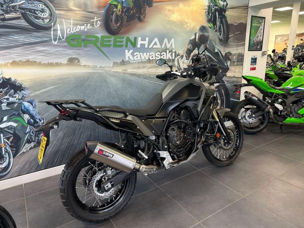 Ready to take you from winding tarmac roads to remote gravel tracks with confidence, this 2023 Yamaha Tenere 700 blends rugged capability with everyday practicality. Built around a proven 689cc CP2 twin engine and inspired by Yamaha’s Dakar rally heritage, the Tenere 700 is one of the most capable middle-weight adventure bikes on the market. This example is in excellent condition, and comes ready for your next big adventure. Key Features & Specification: 689cc liquid-cooled, 4-stroke, DOHC twin-cylinder engine 6-speed transmission with smooth power delivery Long travel suspension for confident off-road handling Dakar style windscreen for comfort at speed Dual-purpose tyres and resilient chassis LCD instrument panel with essential info at a glance Twin front disc brakes with ABS With additional Scorpion exhaust, crash bars, fog lights and rear rack. This bike comes very well equipped. It comes with a service last carried out in August of 2025 and is in lovely condition. As with all Greenham Kawasaki used models, it includes a 12-month guarantee for your peace of mind, with nationwide delivery also an option. Should you have any additional questions about this or any other model here at Greenham Kawasaki, please do reach out to us on 01635 916464 – we look forward to hearing from you. Part exchange very welcome. 12 months warranty, 12 months MOT