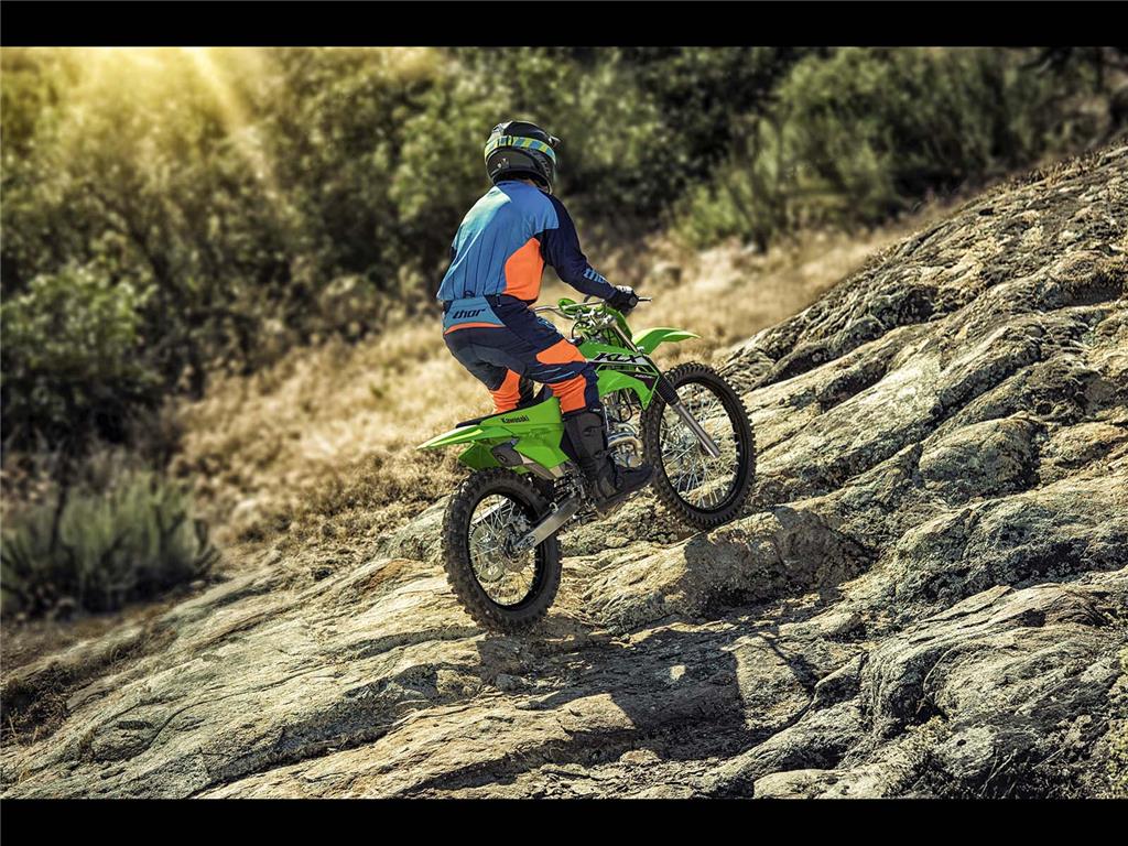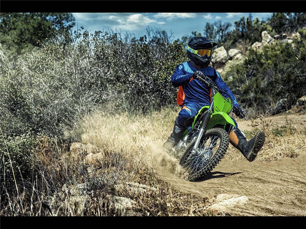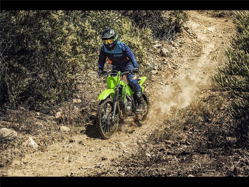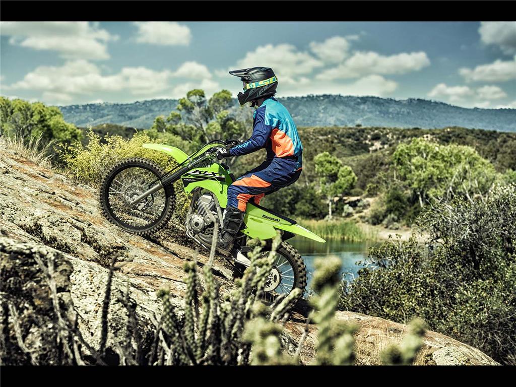 Featuring confident handling, KLX140R motorcycles are the ideal entry into off-road riding. The easy-to-ride KLX140R lineup offers a 144cc engine, plush suspension, and push button electric start, making for great trailblazers.