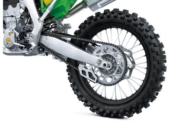 KX450-based frame (an evolution of the current design) and KX450 swingarm offer improved handling and increased rear wheel traction.