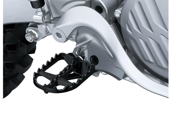 The footpegs are 5 mm wider (front-to-rear) and positioned 3 mm rearward to offer excellent grip, superb feel making it easier to weight the pegs plus they are lighter too.