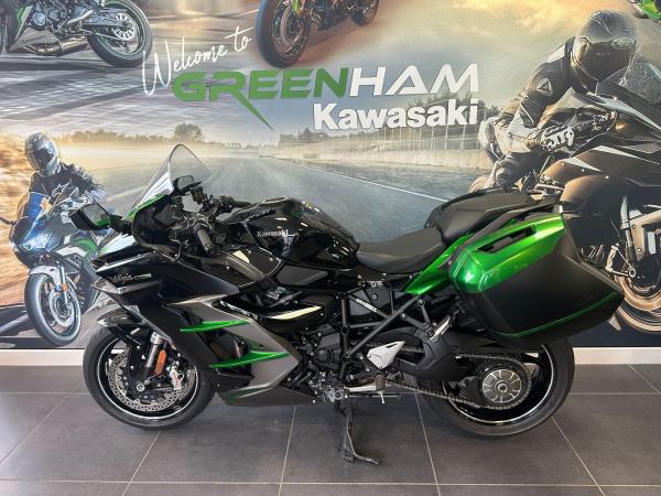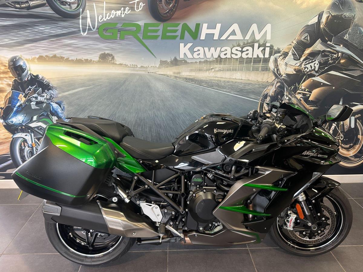 This stunning 2025 Kawasaki Ninja H2 SX SE Tourer offers the perfect balance of supercharged performance, cutting-edge technology, and long-distance touring comfort. Finished to an exceptional standard, the H2 SX SE represents the pinnacle of Kawasaki’s sports touring range, combining breathtaking power with premium rider aids and touring practicality. Powered by Kawasaki’s renowned 998cc supercharged inline-four engine, the H2 SX SE delivers effortless acceleration and outstanding refinement whether carving through country roads or covering serious motorway miles. The SE specification includes Kawasaki’s most advanced electronics package, alongside high-end suspension and braking components, ensuring confidence and control in all riding conditions. Tourer Package Includes: Genuine Kawasaki colour-matched panniers Heated grips Large touring windscreen GPS bracket Tank pad and touring accessories Key Features: 998cc Supercharged inline-four engine KECS electronic suspension with Skyhook technology Brembo front brake calipers Kawasaki Traction Control (KTRC) Quick shifter (up & down) Full colour TFT display with smartphone connectivity LED cornering lights Keyless ignition This particular example is in lovely condition throughout , with a full service history and the most recent service in March of 2026 Should you have any additional questions about this or any other model here at Greenham Kawasaki, please do reach out to us on 01635 916464 – we look forward to hearing from you.