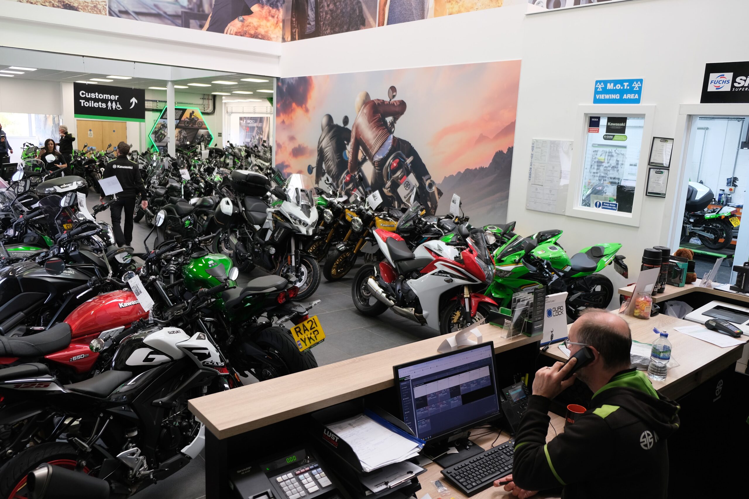 Beyond the bikes, we offer comprehensive servicing in our high-tech, expansive, modern 5-Bay Workshop. Our factory-trained technicians, including Kawasaki Master technician, are on hand to service or repair your motorcycle, whatever the make and requirement, with MOTs, tyre replacements, and OE replacement parts available on-site.