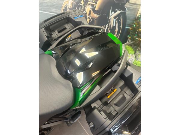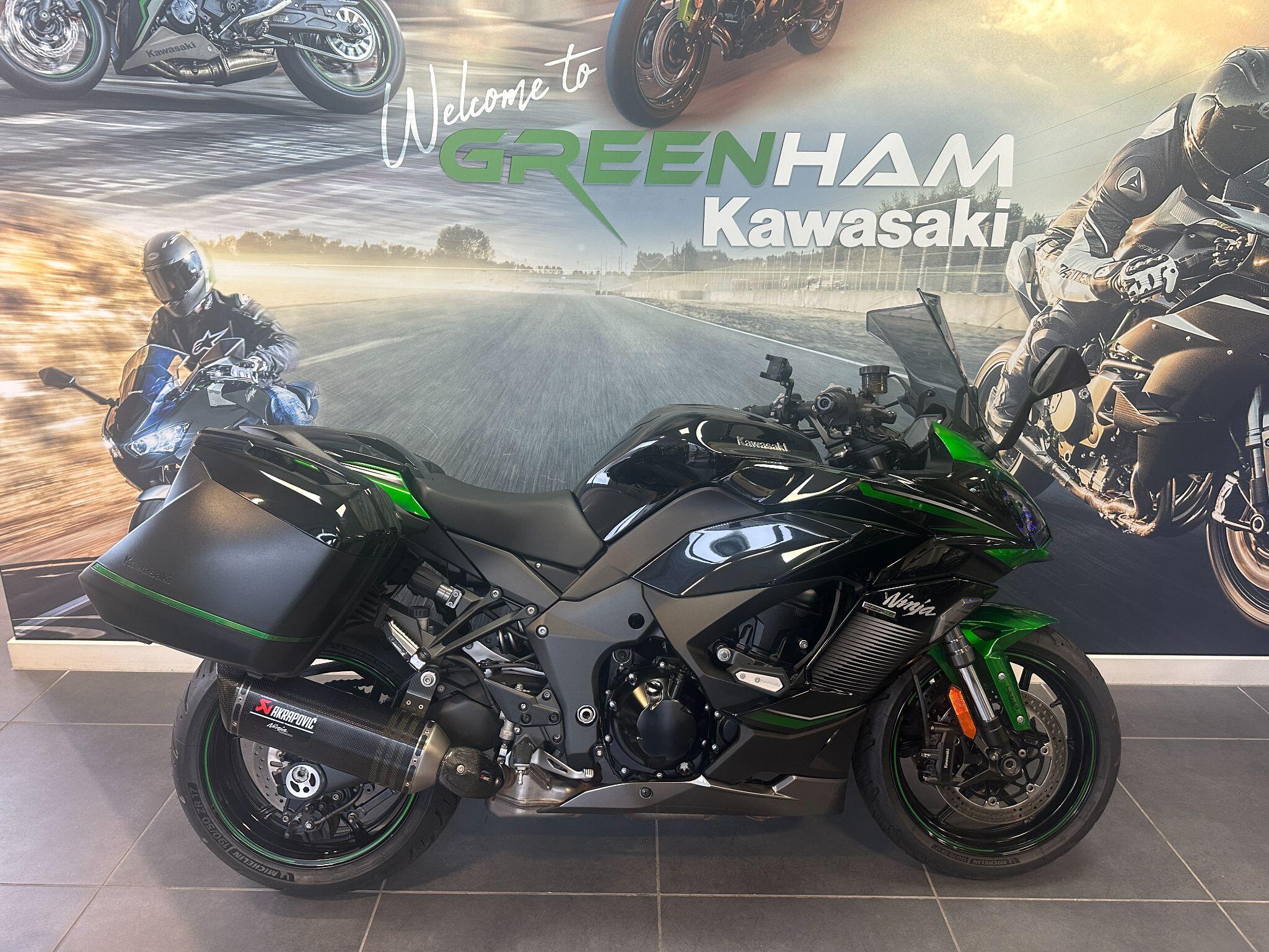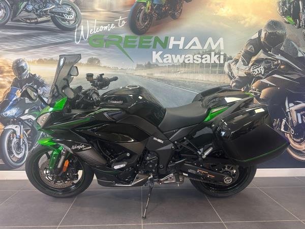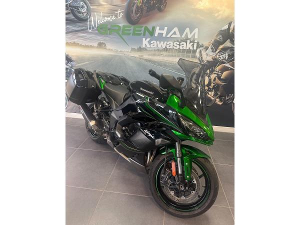Introducing the Ninja 1000 SX Performance Tourer- a class-leading sports tourer that blends sharp superbike styling with long-distance comfort and high-end technology. Powered by a responsive 1,043cc inline-four engine, the Ninja 1000SX delivers smooth, linear power with a thrilling edge, whether you’re carving through B-roads or cruising the motorway. Ride-by-wire throttle, Kawasaki’s Intelligent ABS, traction control, cruise control, and selectable power modes come as standard – giving you full control in all conditions. The integrated pannier mounting system, full TFT colour display, and Bluetooth smartphone connectivity make this a truly modern machine built for real-world riding. Ergonomics have been refined for both rider and pillion, with a single-sided exhaust system for a clean, stylish finish. With its aggressive lines, advanced electronics package, and a superb balance of performance and practicality, the Ninja 1000SX remains one of the most complete all-rounders on the market. Available now – experience the best of both sport and touring in one versatile machine. This particular example has a Full Greenham Kawasaki service record with its most recent service just 300 miles ago in July of 2025. Kitted out with the Performance and touring kit, it has side mounted mono key panniers, Carbon Akrapovic exhaust, large touring windshield, heated grips etc. Should you have any additional questions about this or any other model here at Greenham Kawasaki, please do reach out to us on 01635 916464 – we look forward to hearing from you. Part exchange very welcome. 12 months warranty and 12 months MOT.