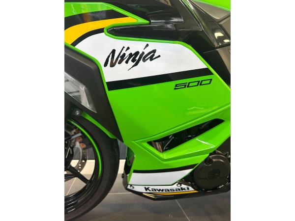 “Make Your Statement with the all-new Ninja 500 sportbike. Turn heads with the aggressive styling Ninja sportbikes are known for and set the tone with a 451cc twin-cylinder engine. Experience legendary Ninja performance on the sportbike designed to lead the crowd.” Ninja 500 SE in the stunning Kawasaki Racing Team livery. Our ex-demonstrator Ninja 500 SE is now up for sale and is in superb condition throughout. Only 292 miles from new and has just been serviced by us, so it’s all ready to go. Supplied with the original Kawasaki pack, keys and owners manual and with the balance of the 4 year Kawasaki warranty until June 2029.