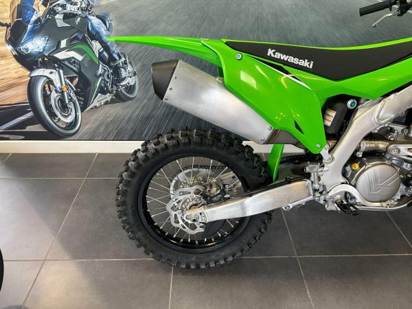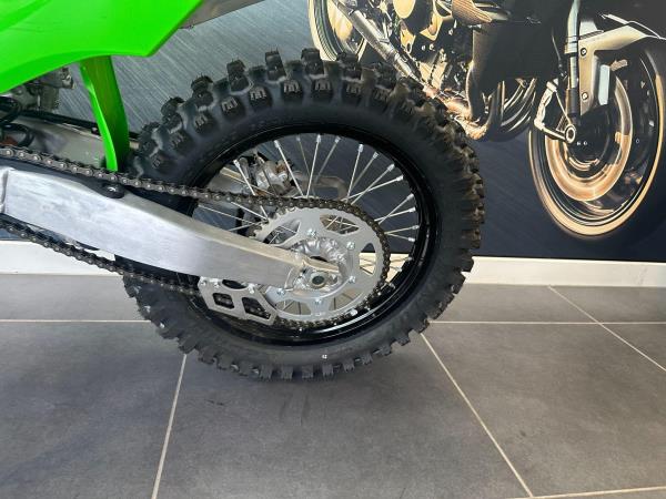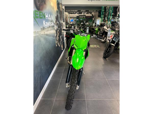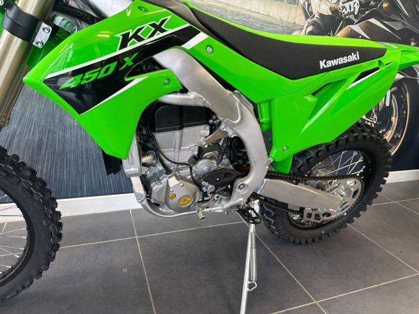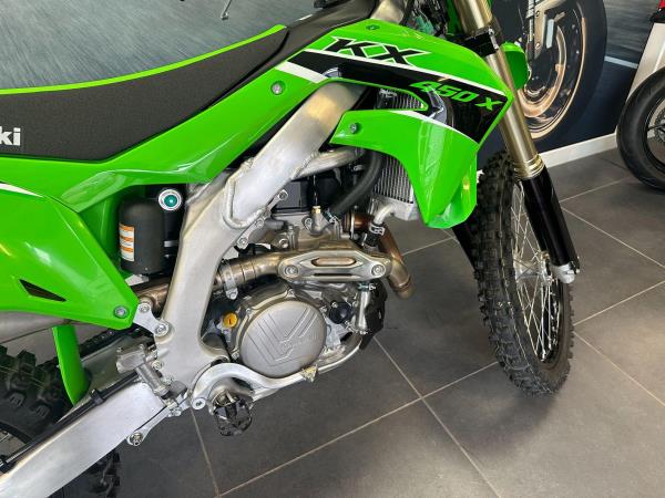 Experience championship-winning performance with this 2023 Kawasaki KX450X – a cross-country machine built for serious riders who demand race-proven power and control. Based on Kawasaki’s legendary KX450 motocrosser, the KX450X adds enduro-focused features for off-road dominance, including optimized suspension settings, an 18-inch rear wheel, side stand, and skid plate. Powered by a 449cc liquid-cooled, fuel-injected single-cylinder engine, this bike delivers instant throttle response and class-leading torque, paired with a lightweight aluminium perimeter frame for agile, confident handling. The smooth-shifting 5-speed gearbox, electric start, and advanced hydraulic clutch ensure effortless control across all terrain. Highlights include: 449cc 4-stroke DOHC engine with race-derived performance Launch Control Mode and adjustable mapping via Kawasaki’s calibration tools Showa 49mm coil-spring front forks with adjustable compression and rebound Uni-Trak rear suspension for superb traction and stability 18-inch rear / 21-inch front wheel setup for cross-country versatility Factory-style Renthal Fatbar handlebars and slim ergonomics Electric start and lightweight lithium-ion battery Whether you’re carving through singletrack, tackling technical climbs, or pushing for the podium, the KX450X delivers championship-level capability straight from the crate. Ride the bike built to win – the 2023 Kawasaki KX450X is ready for the trails, track, or race line.