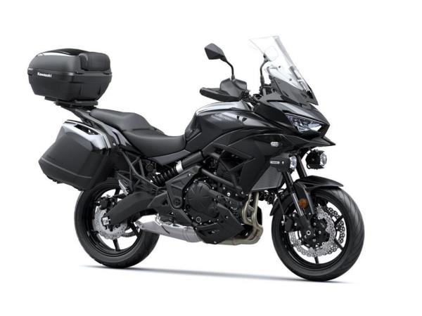 0% APR available with Kawasaki Options Hire Purchase PLUS enjoy 4-year extended warranty included! Also 5.9 % APR available with K Options PCP. The new Versys 650 Grand Tourer, created to conquer your city or leave it far behind. Designed to conquer the urban jungle, its ultimate potential comes to life in the Tourer+ version transporting you, your passenger and luggage to the next big adventure. New dedicated features like an adjustable windscreen, colour TFT Meter with Bluetooth connection, LED lighting and KTRC traction control ensure you enjoy every ride. Short office trip or weekend away, let the Versys 650 be your ultimate travel guide. Grand Tourer model includes Panniers, Inner bags, Touring Screen, Heated Grips, 12 V socket, Sat nav mount , Frame Sliders, Fog lights and Topbox. As with all NEW Kawasaki models here at Greenham Kawasaki, 48 month warranty is included along with 12 month RAC UK-wide breakdown cover for your peace of mind, with nationwide delivery also an option. Should you have any additional questions, want to arrange any finance options or to arrange a test ride, please do get in touch on 01635 916464 !