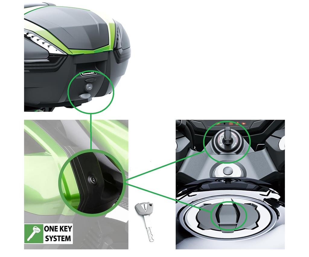 Top case providing a spacious 47 litres of storage space. Will fit two of most full face helmets. Matching top case cover in bike colour to be ordered separately, as well as the anodized aluminium deco plate. Stylish aluminium carrier bracket. This system features the One-Key System, so you can conveniently open the topcase using your ignition key.