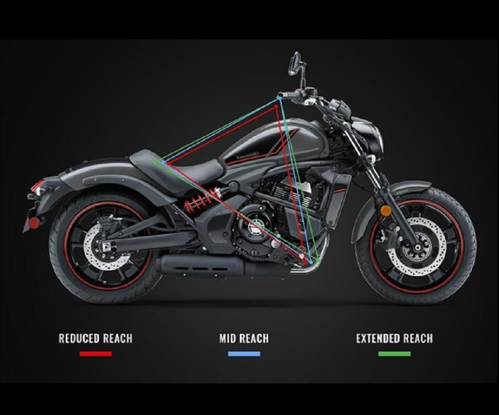 A combination of adjustable factory components and accessories reduce the reach to handlebars and footpegs for the best possible fit.