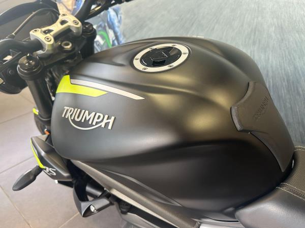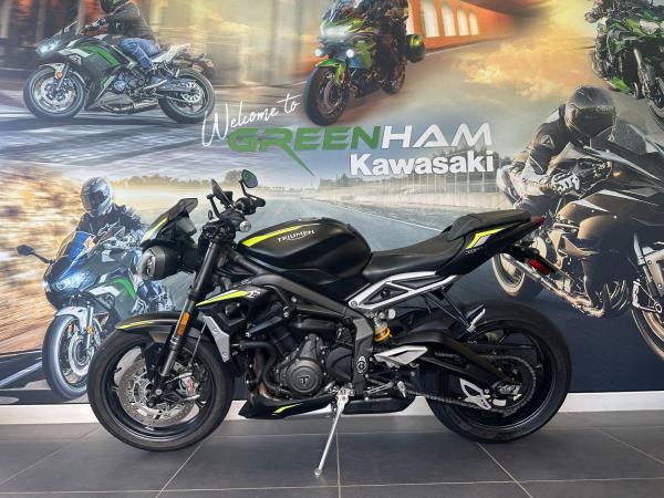 2022 Triumph Street Triple RS – The Ultimate Streetfighter The 2022 Triumph Street Triple RS sets the benchmark for performance naked bikes, combining razor-sharp handling, aggressive styling, and a thrilling ride. Powered by a responsive 765cc triple engine derived from Moto2™ technology, it delivers an exhilarating blend of torque and top-end power, perfectly matched with a slick 6-speed gearbox and quickshifter. This RS model is the top of the range, equipped with premium components throughout. Brembo Stylema brakes provide class-leading stopping power, while fully adjustable Öhlins rear suspension and Showa big piston forks ensure exceptional precision and control. With multiple riding modes, advanced traction control, and a TFT full-colour display, the Street Triple RS offers both cutting-edge technology and rider confidence. Lightweight, agile, and beautifully engineered, the Street Triple RS is designed for riders who demand the very best from a middleweight naked. Whether on twisting backroads, the daily commute, or the occasional track session, it delivers uncompromising performance and pure riding excitement. As with all Greenham Kawasaki used models, it includes a 12-month guarantee for your peace of mind, with nationwide delivery also an option. Should you have any additional questions about this or any other model here at Greenham Kawasaki, please do reach out to us on 01635 916464 – we look forward to hearing from you. Part exchange very welcome.